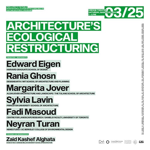 Neyran Turan participates in Architecture's Ecological Restructuring, a symposium that invites six distinctive voices in architecture to challenge traditional disciplinary frameworks and build new forms of ecological thinking, which is held at the Carnegie Mellon University School of Architecture.
